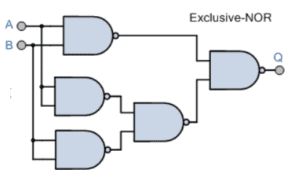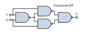 Uses four NAND gates to produce a HIGH output only when inputs differ.